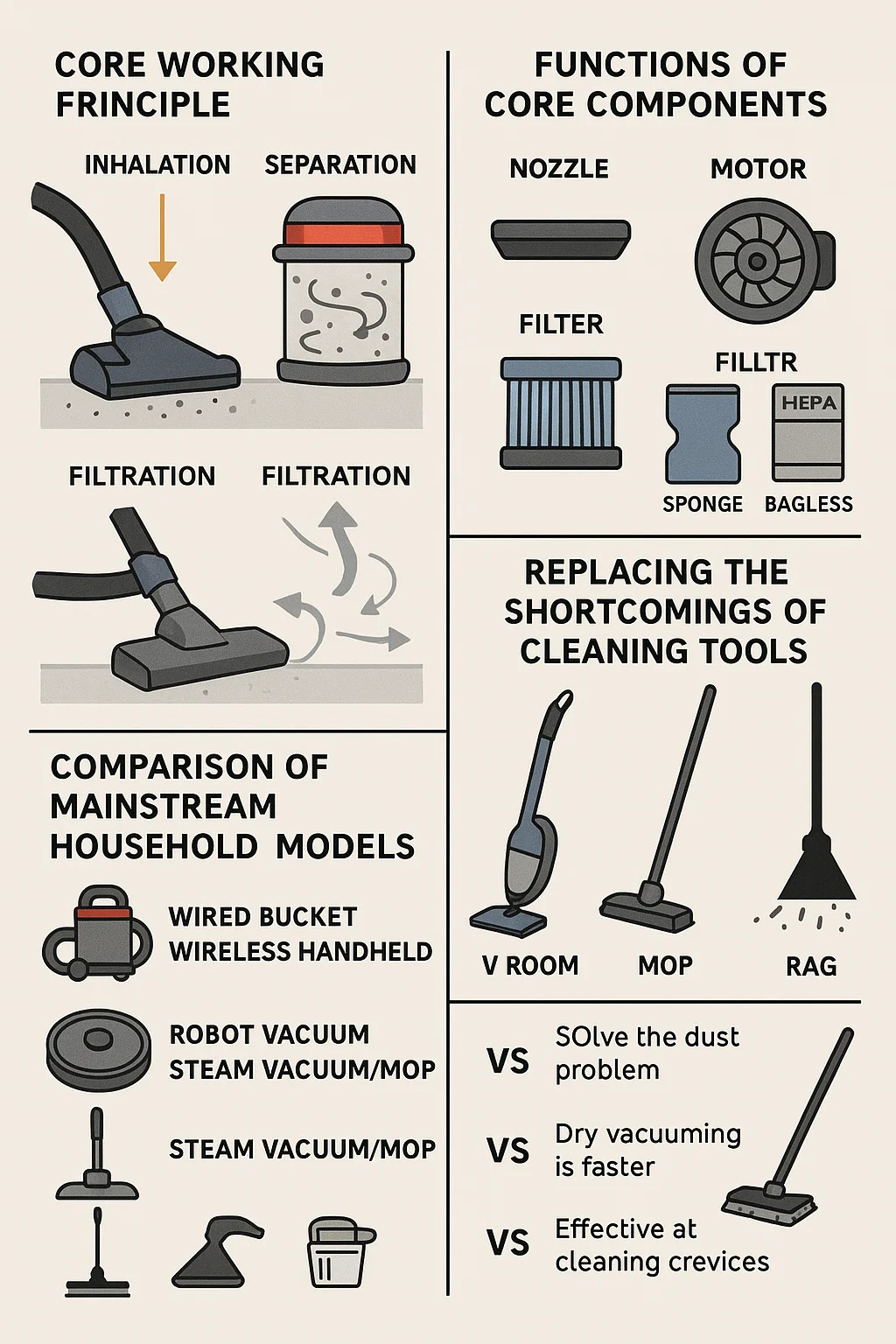ভিএস এমওপি: শুকনো ভ্যাকুয়ামিং দ্রুত, তবে জেদী দাগগুলি অপসারণ করতে পারে না;